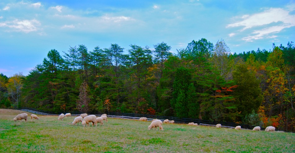 Your pictures are stunning, but this is my favorite. The trees just turning color, the sheep grazing so peacefully…love it!